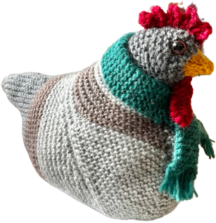 This is actually one of many Emotional Support Chickens -- I made these as Christmas gifts for my family in 2024. Each one has a little winter scarf!