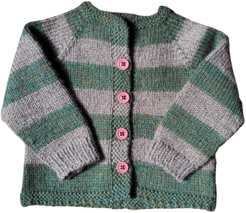 This was supposed to be for my 6-month-old niece, but I didn't gauge swatch and it was way too small! I used the Daisy Embroidered Cardigan pattern without the embroidery, and added ribbed cuffs. Yarn is Drops Nepal in Forest Green, and a random gray wool from my stash (not sure of the brand).